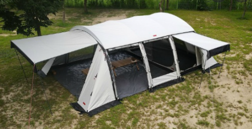 에어텐트는 기본적으로 사이즈가 그렇게 크지 않습니다. 길이는 길지만 폭이 그렇게 큰 제품이 잘 존재하지 않는다고 해야할 것 같습니다. 물론 엘로우스톤 하이브리드는 폭이 나오기는 하지만... 대다수는 폭이 크지 않습니다.