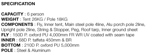 상대적으로 비슷한 크기인 엘로우스톤ex의 무게를 확인해 보더라도 full package 기준 27kg입니다. 물론 이제는 a7ex가 더 크기 때문에 비교가 애매할 수 있지만, 스틸 폴이 아닌 텐트와의 비교에서 무게 차이는 고작 3~4kg 수준이라는 것입니다.
